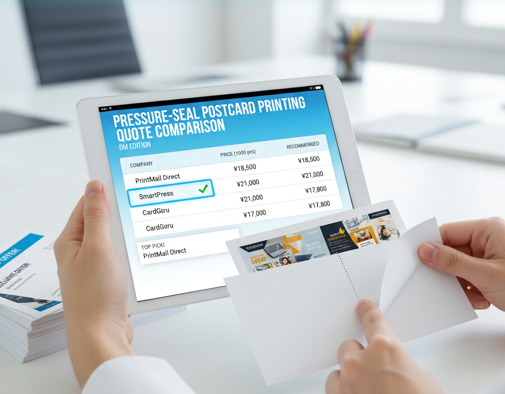 つまり、DM全体のコスト(印刷費+郵送費)で比較した場合、情報量を多く盛り込みながらも郵送費が安く済むため、総合的に見て費用対効果が高いと言えるのです。ただし、圧着加工の工程があるため、1枚あたりの印刷単価自体は通常のはがきより高くなることを理解しておく必要があります。この費用メリットについては、記事内の「圧着はがきが通常のハガキより安い理由」で詳細に解説しています。
